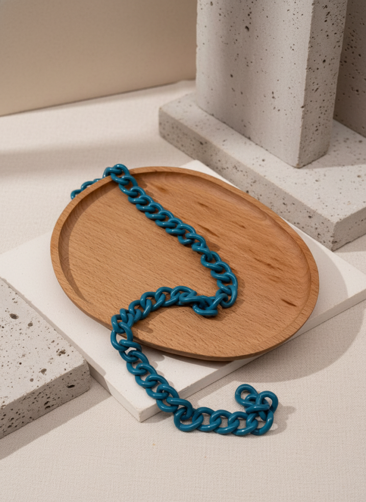 유광 컬러 코팅이 적용된 메탈 체인으로,기존 금속 체인에 컬러 포인트를 더해 디자인 활용도를 확장한 타입입니다.