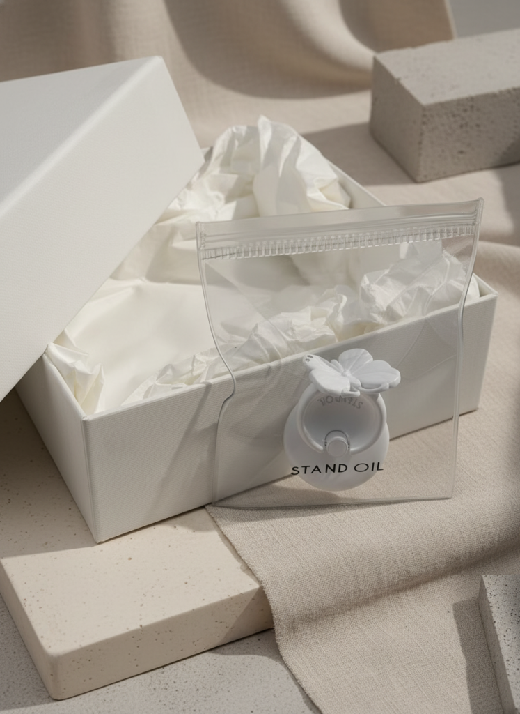 투명 파우치 패키지를 사용해제품의 실루엣과 표면 질감을 직관적으로 드러내며,브랜드 로고 인쇄를 통해 심플하면서도 정돈된 인상을 강조했습니다.