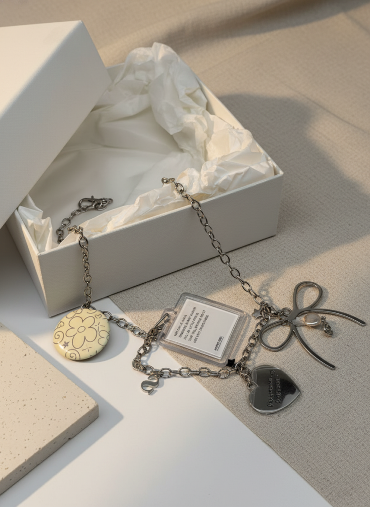 체인 연결부에는 메탈 부자재를 적용해 전체 디자인에 안정적인 구조감을 부여했으며,