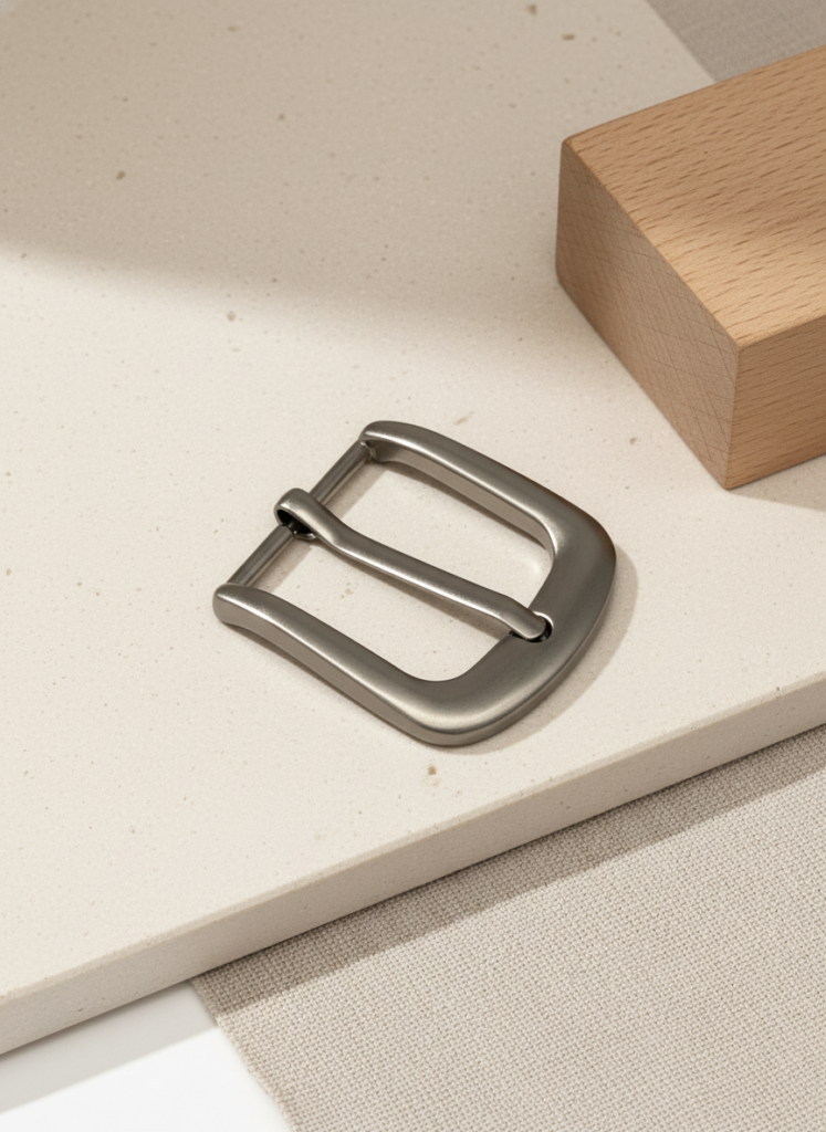 썬번 프로젝트(SUNBURN PROJECT) 버클입니다.전용 금형을 기반으로 프레임 곡률과 핀 구조를 설계해부드러운 실루엣과 안정적인 사용감을 구현했습니다.