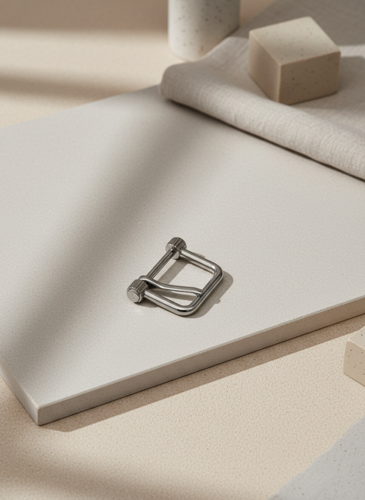 싱글 핀 구조의 사각 형태 버클 하드웨어입니다.